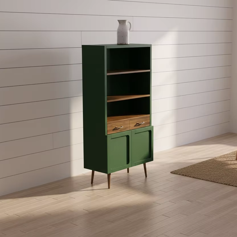 FCJ Buffet moderne classique à porte en verre Meubles en bois massif sarcelle foncé pour la maison Bar Salle à manger Salon