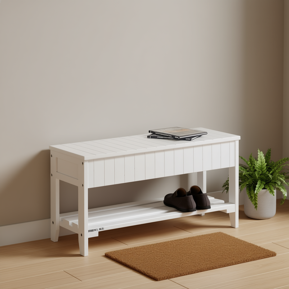 Banc à chaussures en bois massif de haute qualité avec rangement blanc Étagère à chaussures de qualité