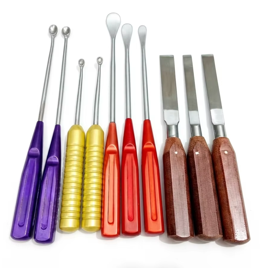 Ensemble de 10 instruments chirurgicaux orthopédiques de haute qualité (cuillère, ciseau et couteau Cobb) approuvé CE ISO13485