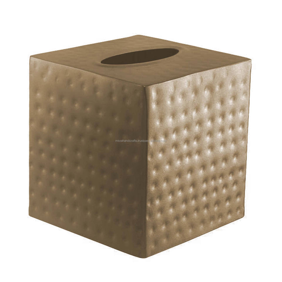 Boîte à mouchoirs en métal de conception carrée martelée de haute qualité, boîte en papier moderne créative pour votre salle de bain, cuisine, bureau, chambre à coucher
