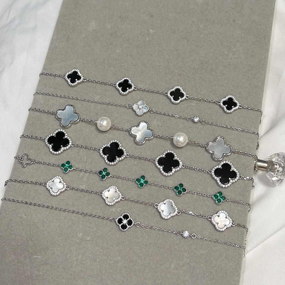 High Quality Stainless Steel 1.5MM 18K Gold-Plated Double-Sided Genuine Agate Four-Leaf Clover Charm Bracelet