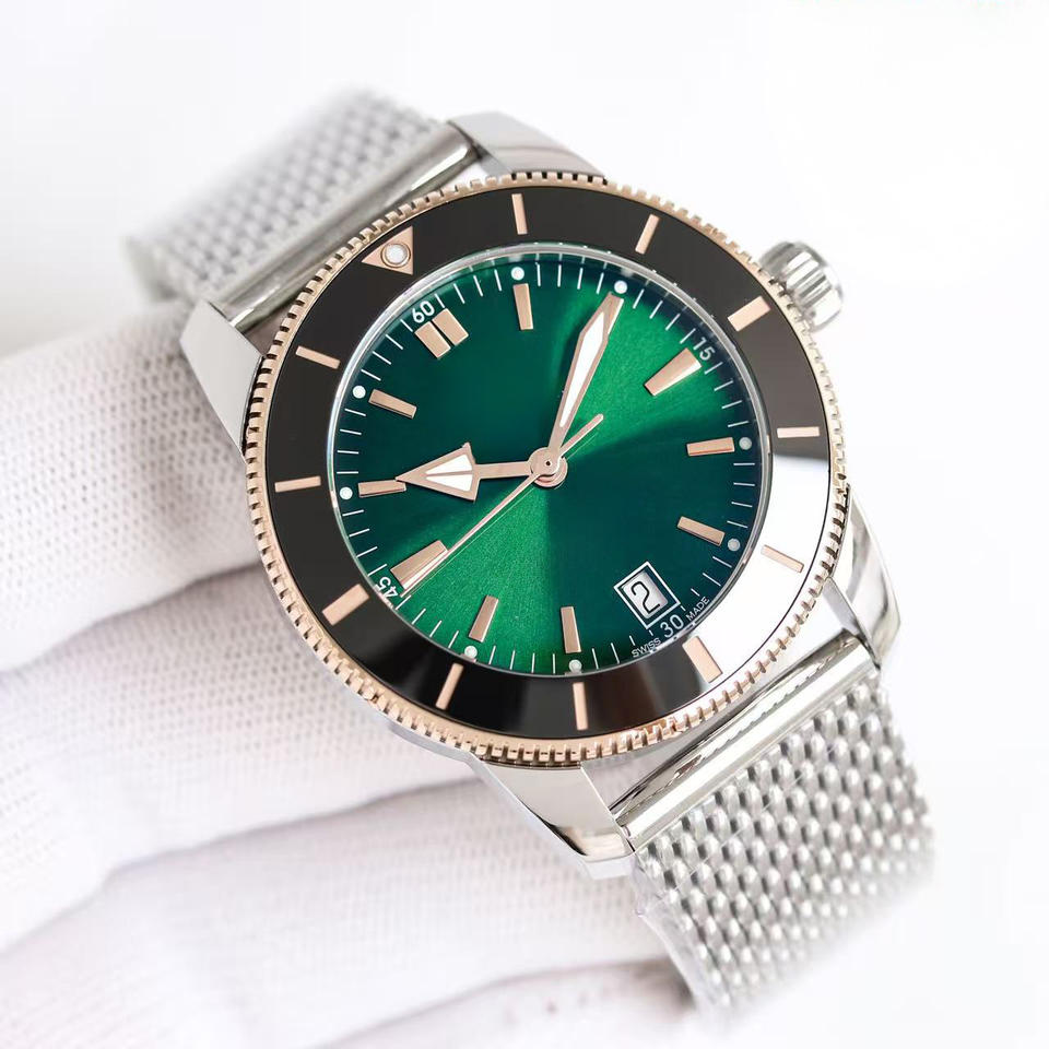Montre mécanique automatique de haute qualité en acier inoxydable avec calendrier, résistante à l'eau, fermoir papillon