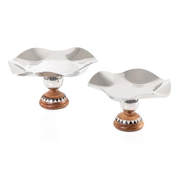 High Quality Stainless Steel Bowl Wooden MOP Stand Decorative Metal Bowl Serving Dish for Party for Serving Chocolate Sweets