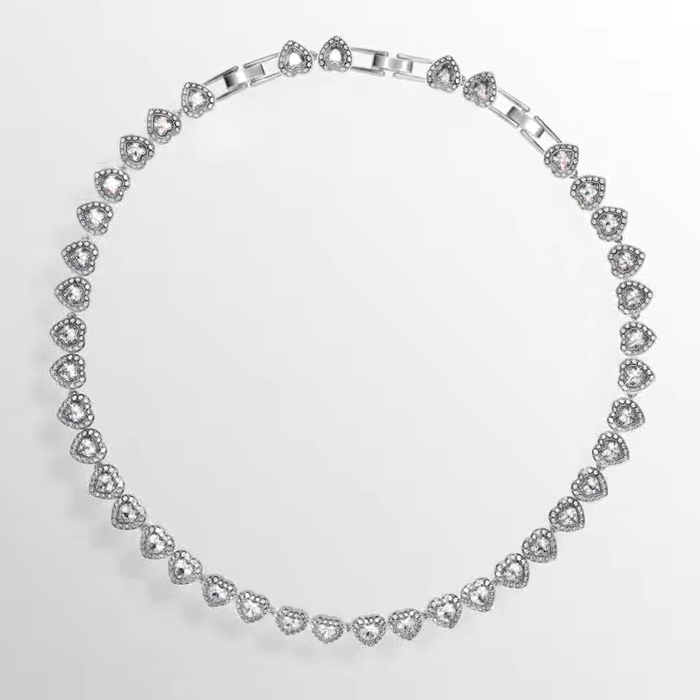 Bijoux de luxe en gros, bracelet, collier et boucles d'oreilles en acier inoxydable de haute qualité avec un bouton en diamant et des cristaux