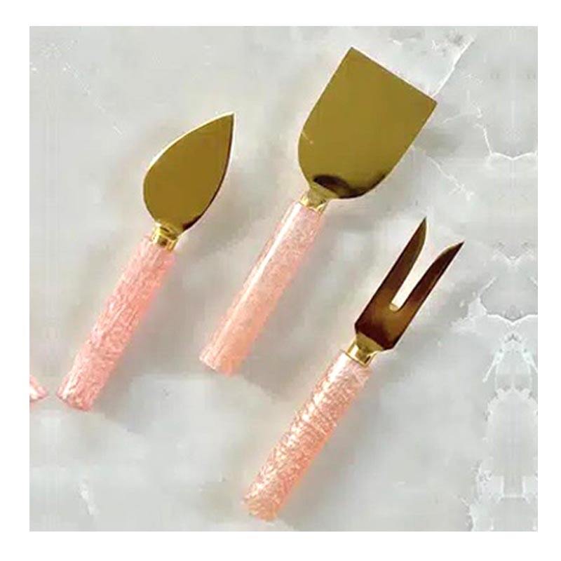 Ensemble de fromage en acier inoxydable de haute qualité avec manche en marbre blanc fait à la main Couteaux à fromage plaqués or de luxe Outils à fromage en métal