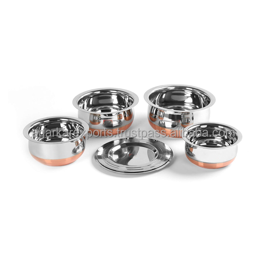 Ensemble de casseroles en acier inoxydable de haute qualité avec fond en cuivre – Ustensiles de cuisine Handi avec couvercle