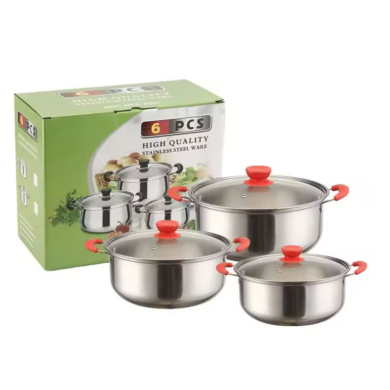 Ensemble de casseroles en acier inoxydable de haute qualité, 6 pièces, ensemble de casseroles pour soupe