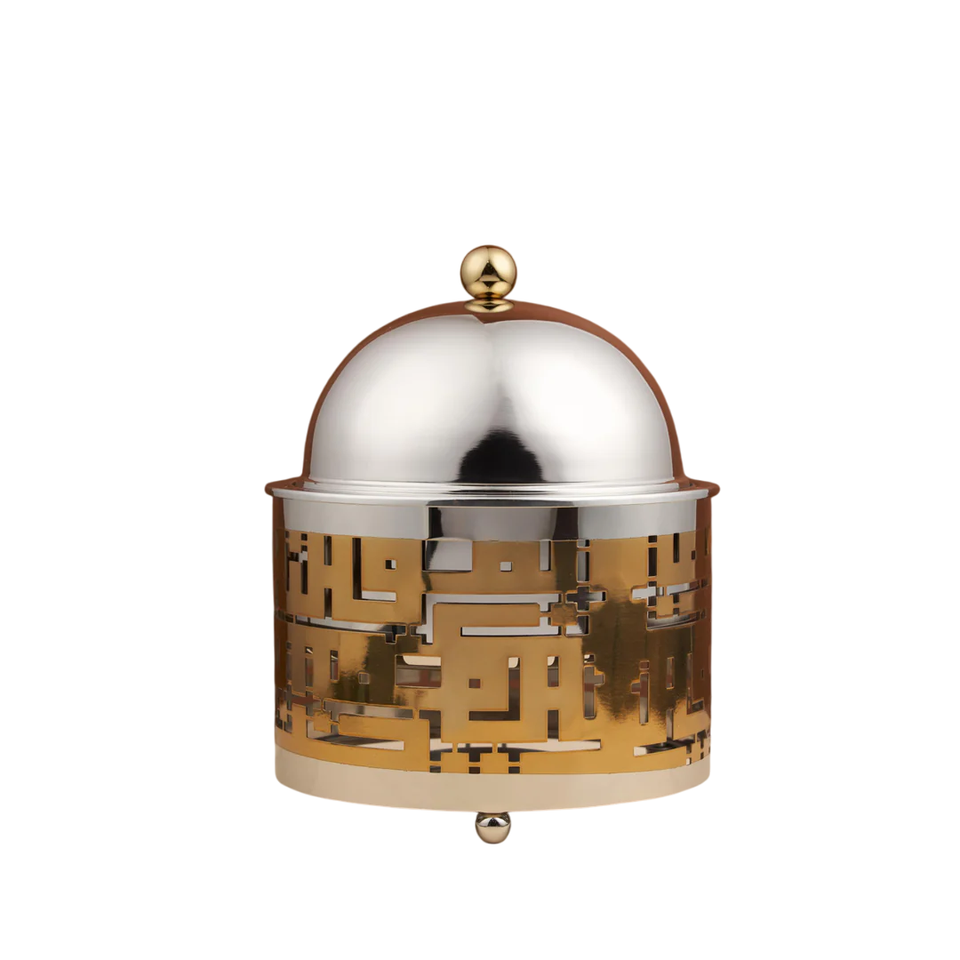 Chauffe-plat en acier inoxydable de haute qualité finition argentée durable avec calligraphie arabe
