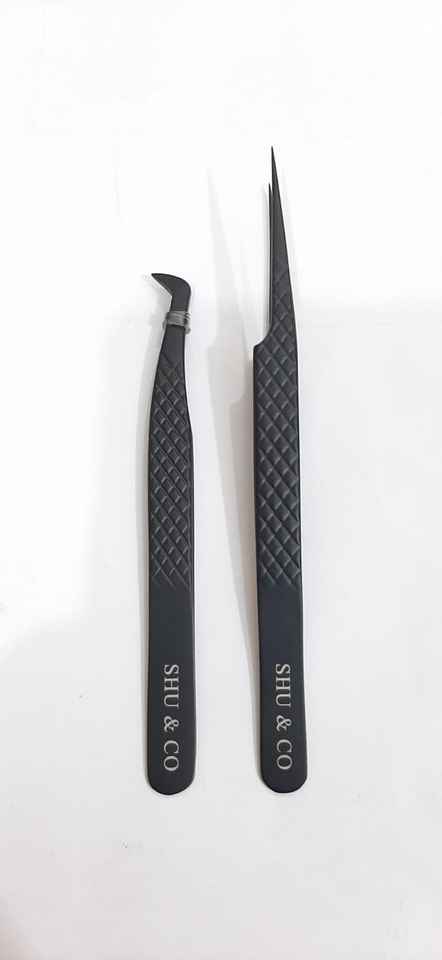 Pincettes d'extension de cils en acier inoxydable de haute qualité, couleur personnalisée, ensemble de 2 pièces pour cils individuels, pointes droites et incurvées
