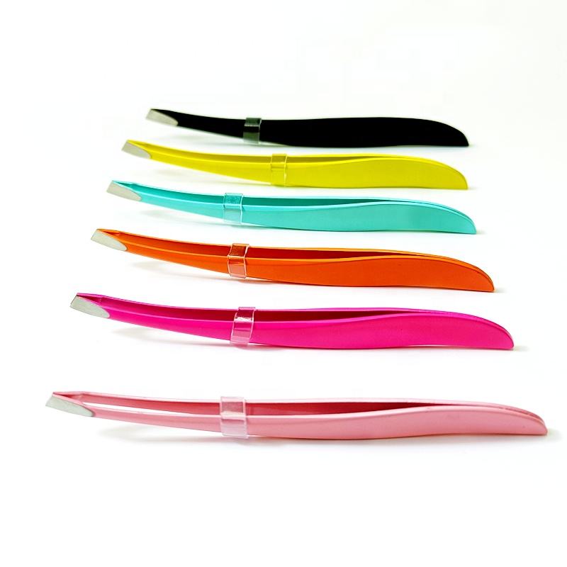 Pinces à épiler professionnelles de haute qualité en acier inoxydable ZULLO INDUSTRIES, lot de six à pointe inclinée, couleurs personnalisées, marque privée
