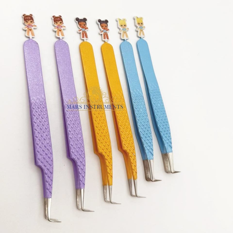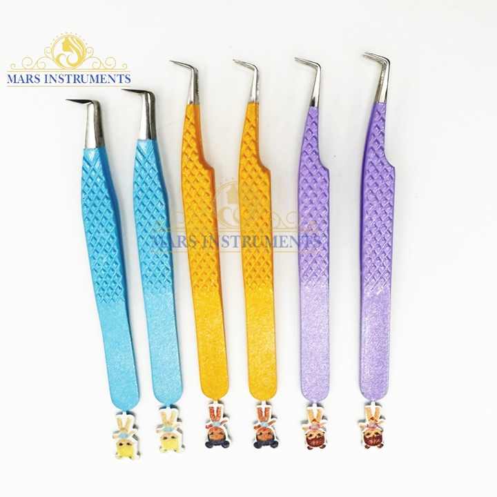 Pince à épiler d'extension de cils en acier inoxydable de haute qualité avec pince à cils à pointe en fibre de conception personnalisée