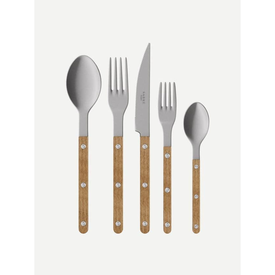 Ensemble de couverts en acier inoxydable de haute qualité avec manche en bois, finition polie miroir, pour la maison, la cuisine et les restaurants