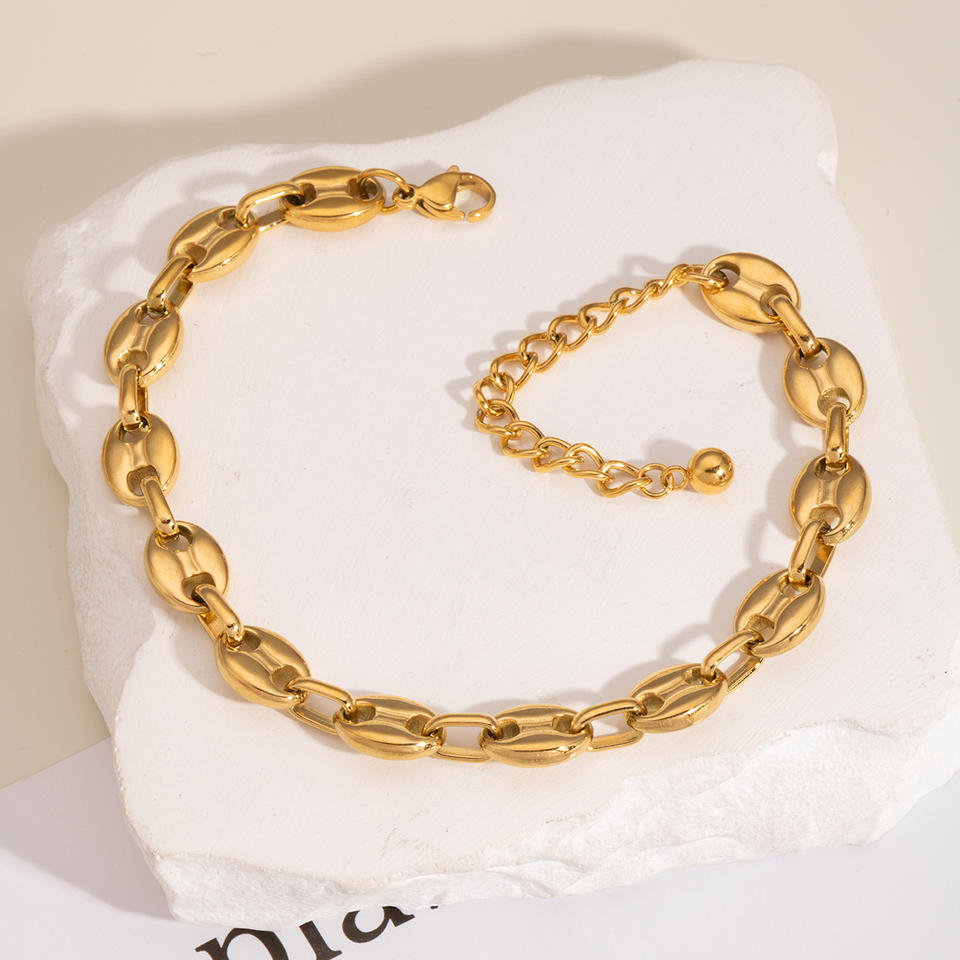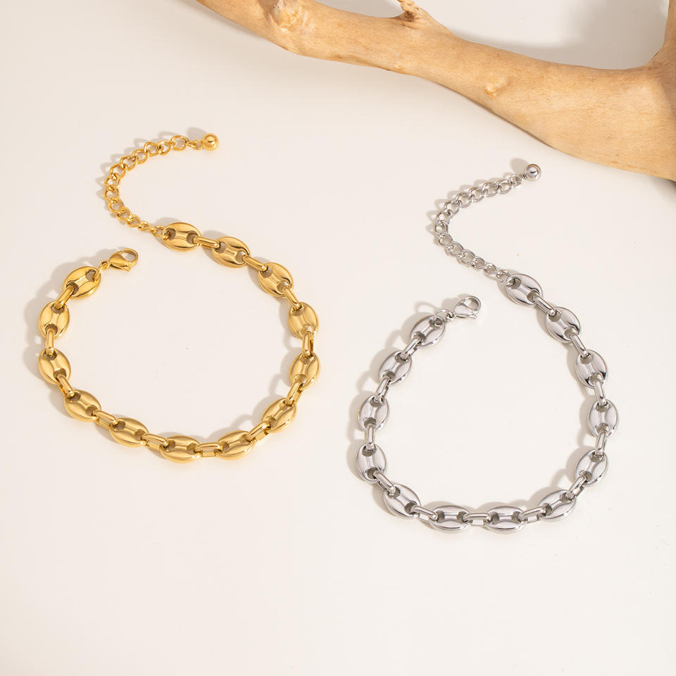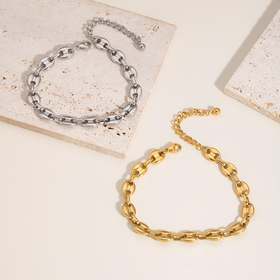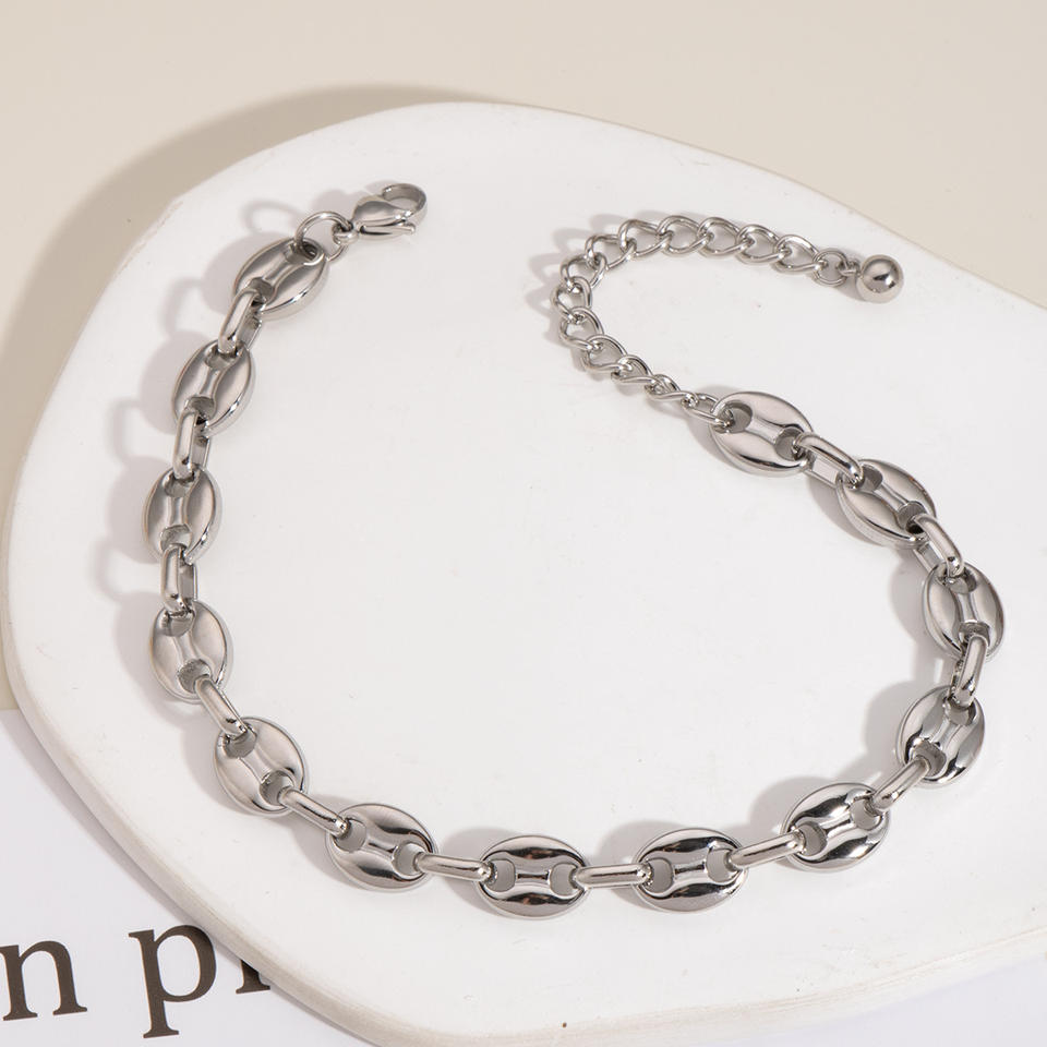 Chevillère géométrique en acier inoxydable de haute qualité, chevillère exquise en forme de grain de café, nez de cochon, unisexe, bijoux de mode populaires