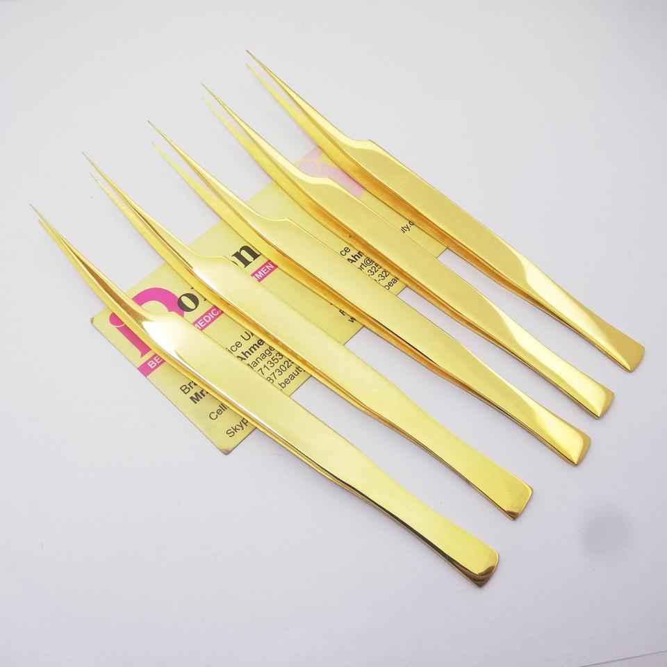 Pince à épiler professionnelle en acier inoxydable plaqué or de haute qualité pour extensions de cils, avec logo personnalisé, ensemble de pinces à isolation droites