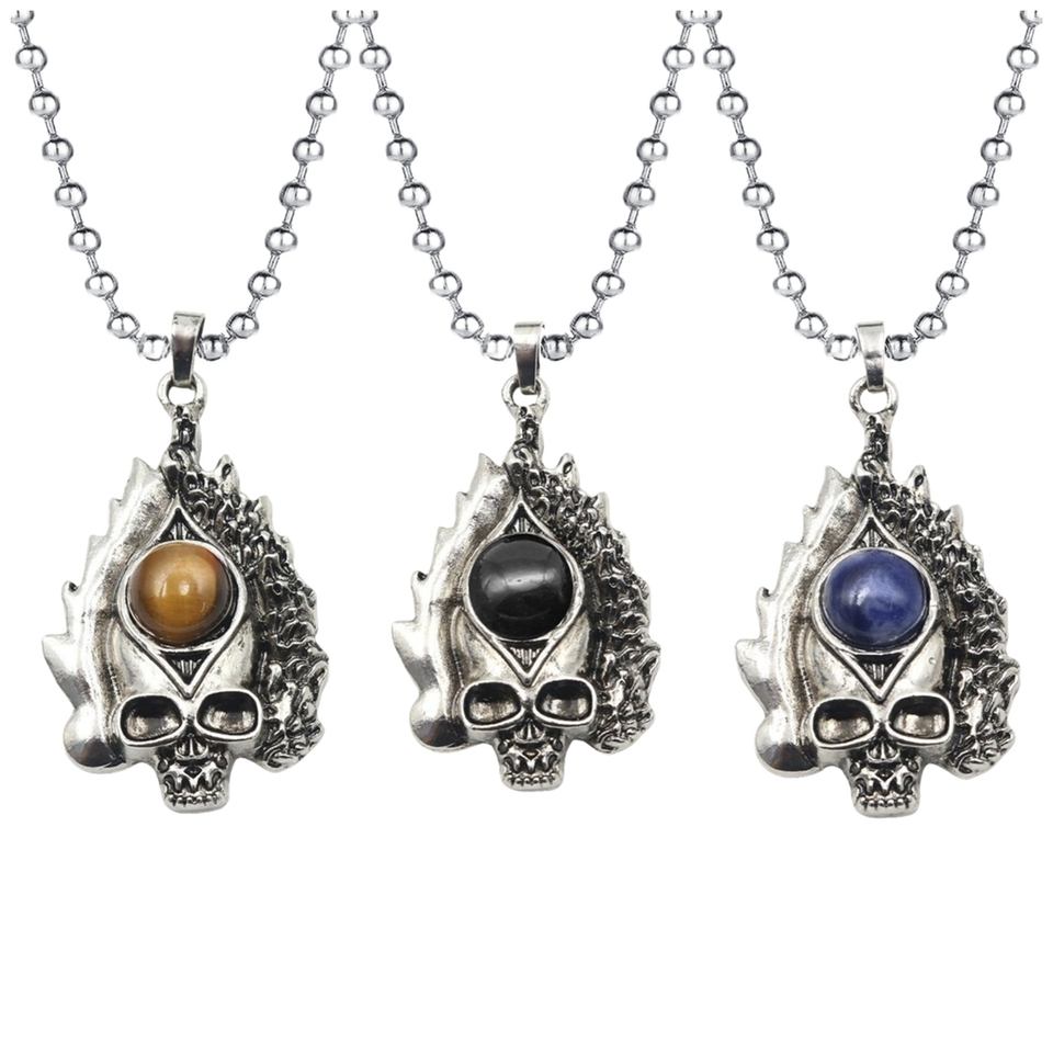 Haute Qualité En Acier Inoxydable Long Lien Chaîne Nature Ronde Pierre Charme Pendentif Collier Bijoux Avec Un Prix Pas Cher