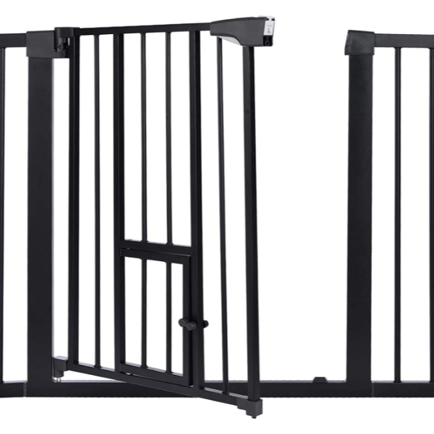 Barrière de sécurité pour animaux de compagnie en acier inoxydable de haute qualité, de forme carrée, avec fenêtre et porte pour chat - Barrière de sécurité rétractable pour escalier
