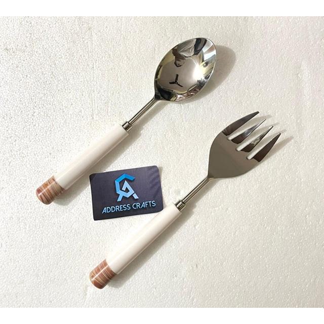 Serveur à salade en acier inoxydable de haute qualité, manche en nacre, cuillère à salade premium, fourchette, couverts en coquillage, ustensiles de cuisine