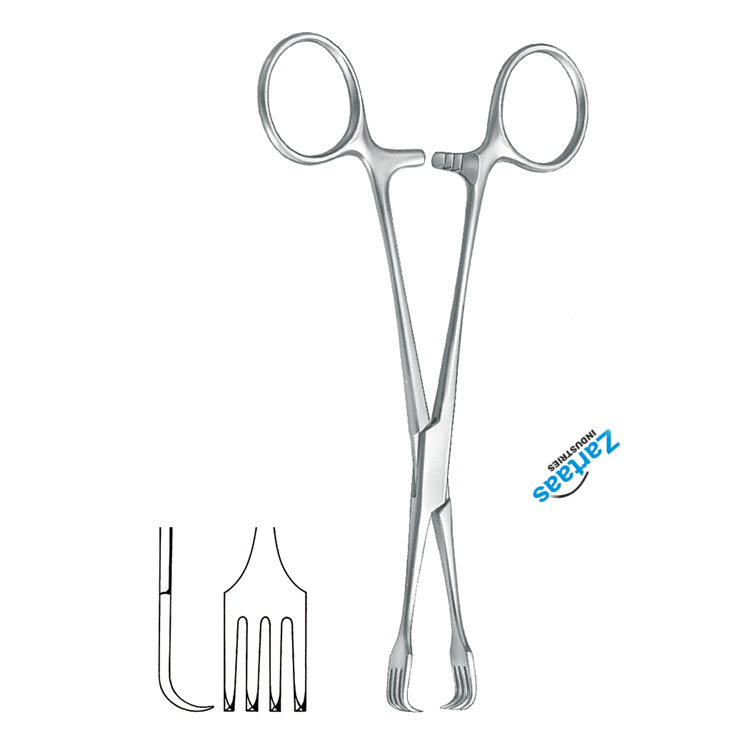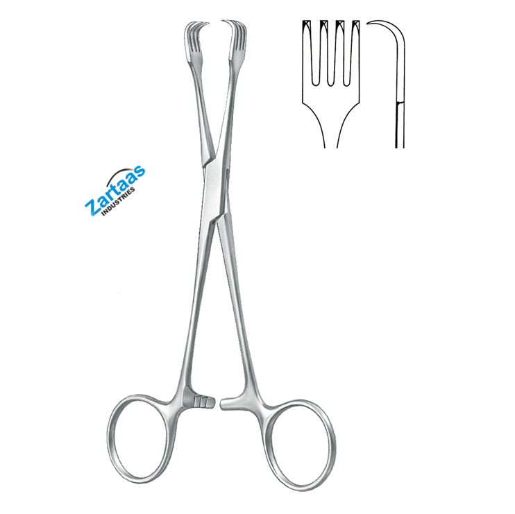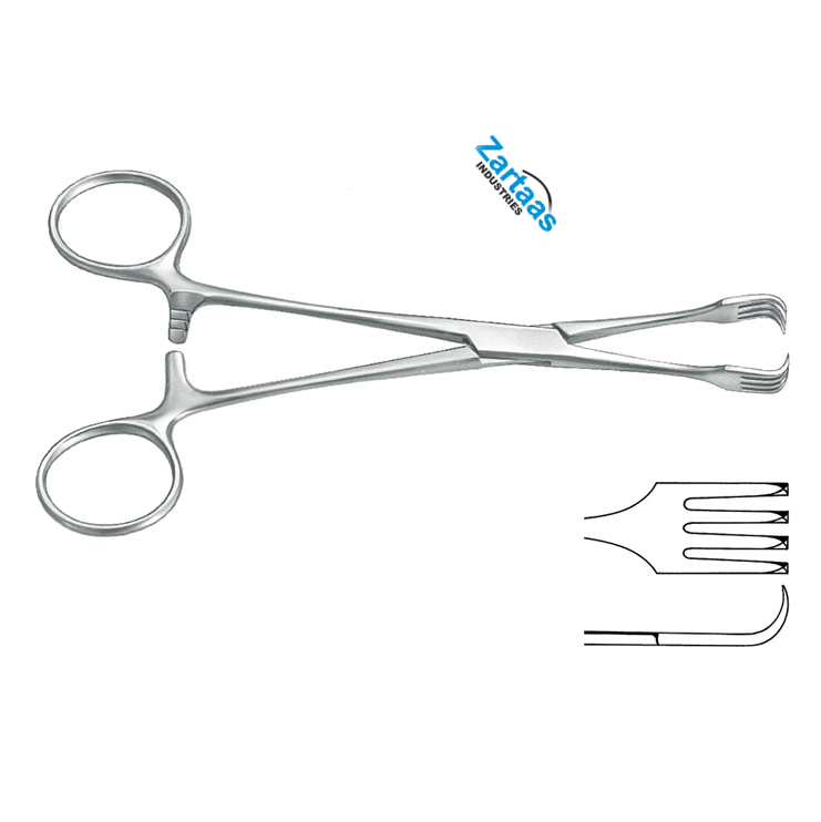Pince à Tenaculum en acier inoxydable de haute qualité 4x4 dents 15.5cm / 6.25 "Fabricant et exportateur d'instruments chirurgicaux