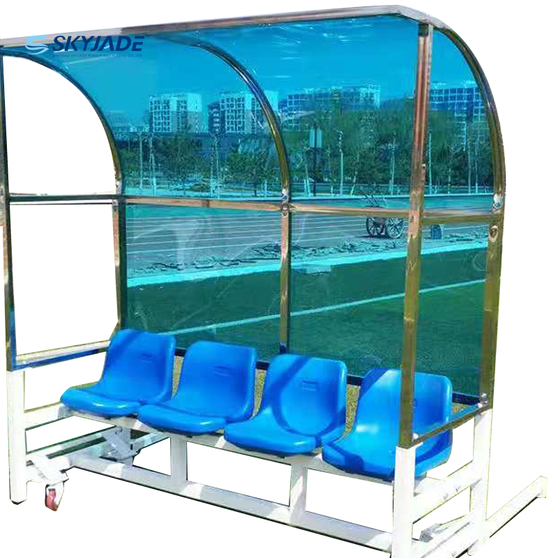 Banc de remplacement en carbone en acier de haute qualité 4 sièges Logo personnalisé stade de football entraîneurs banc balle divertissement sportif