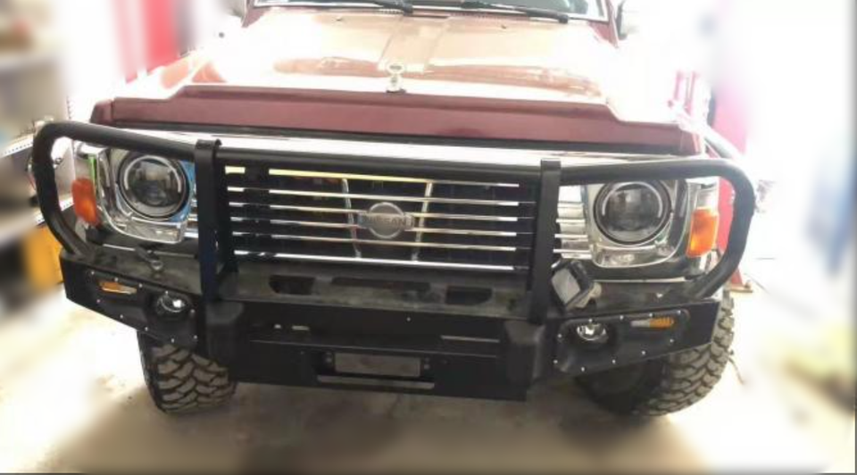 Pare-chocs avant en acier de haute qualité avec barre de protection pour Nissan Patrol Y60, comprend des découpes pour crochet de remorquage