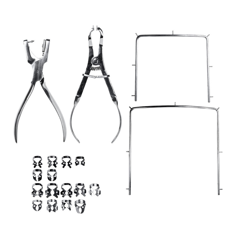 Kit de barrage en caoutchouc endodontique dentaire en acier et acier inoxydable de haute qualité avec instruments de pinces de poinçonnage de cadre-OEM/ODM pris en charge