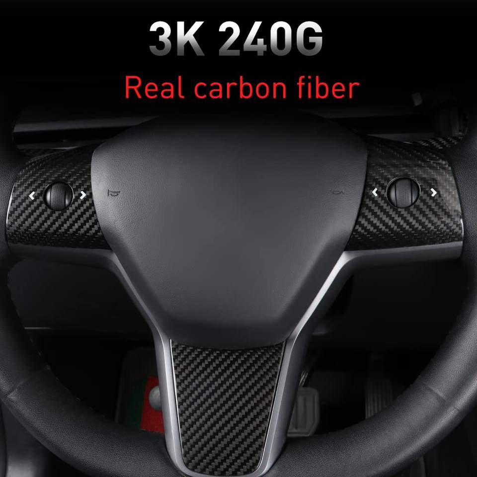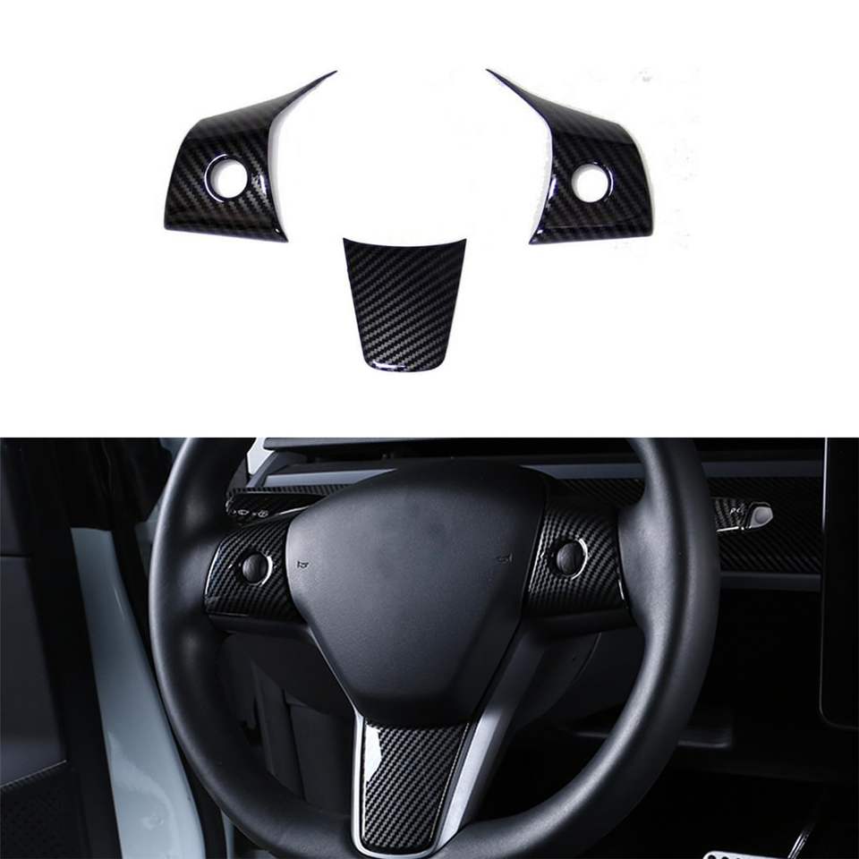 Couvre-volant décoratif de haute qualité pour Tesla Model 3/Y, accessoires décoratifs (fibre de carbone brillante), accessoires de voiture