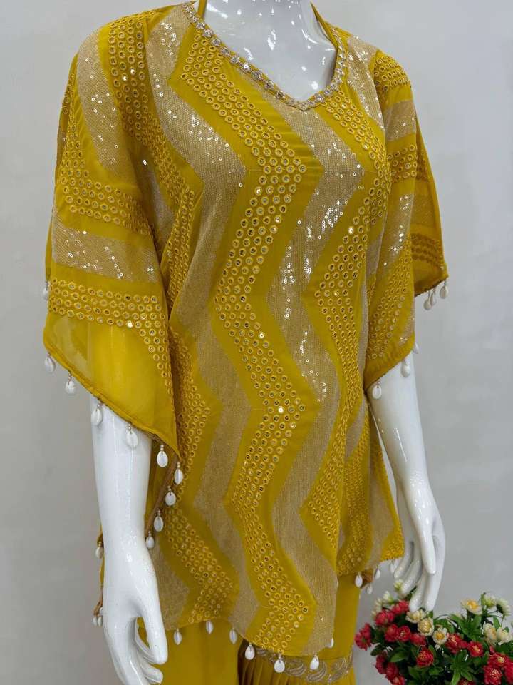 Product Name:Faux Georgette Sequence Work Kaftan With Choli & Sharara