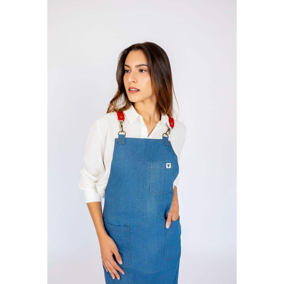 Tablier en jean délavé de haute qualité, réutilisable pour chef, barbier, jardinier, barista et utilisation avec des outils, personnalisable pour restaurants