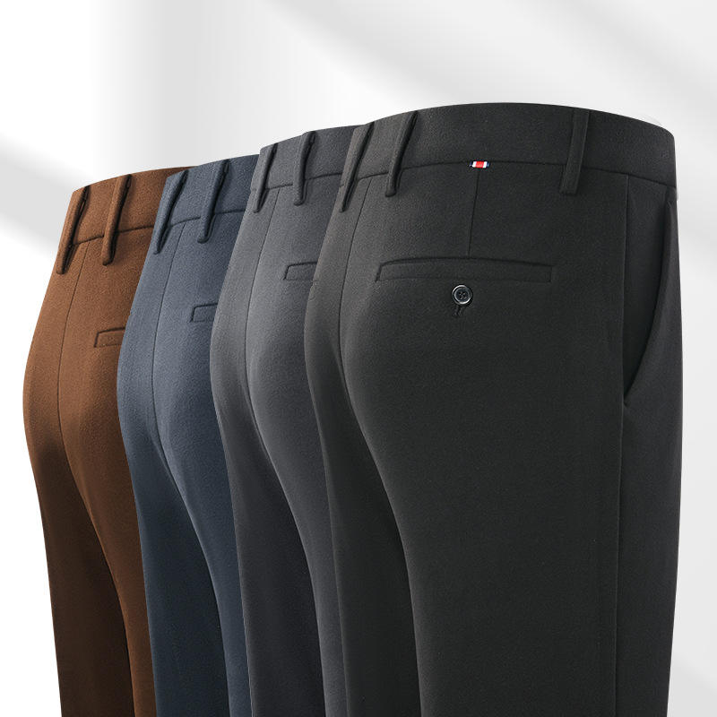 Pantalon décontracté pour homme de haute qualité, coupe slim droite, couleur unie, pantalon de costume long avec poches, pour le bureau, élégant