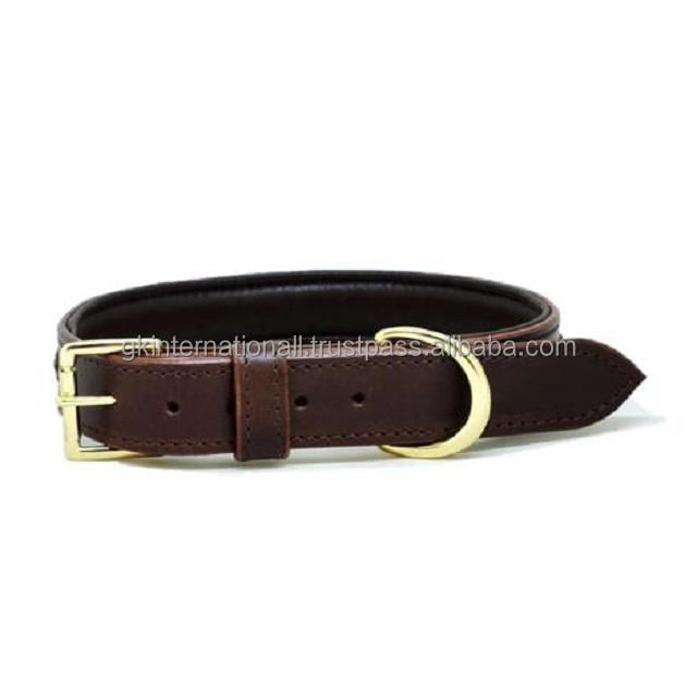 Collier de chien tressé à la main en cuir rembourré de haute qualité avec finition premium, boucle à rouleau plaquée or, anneau en D