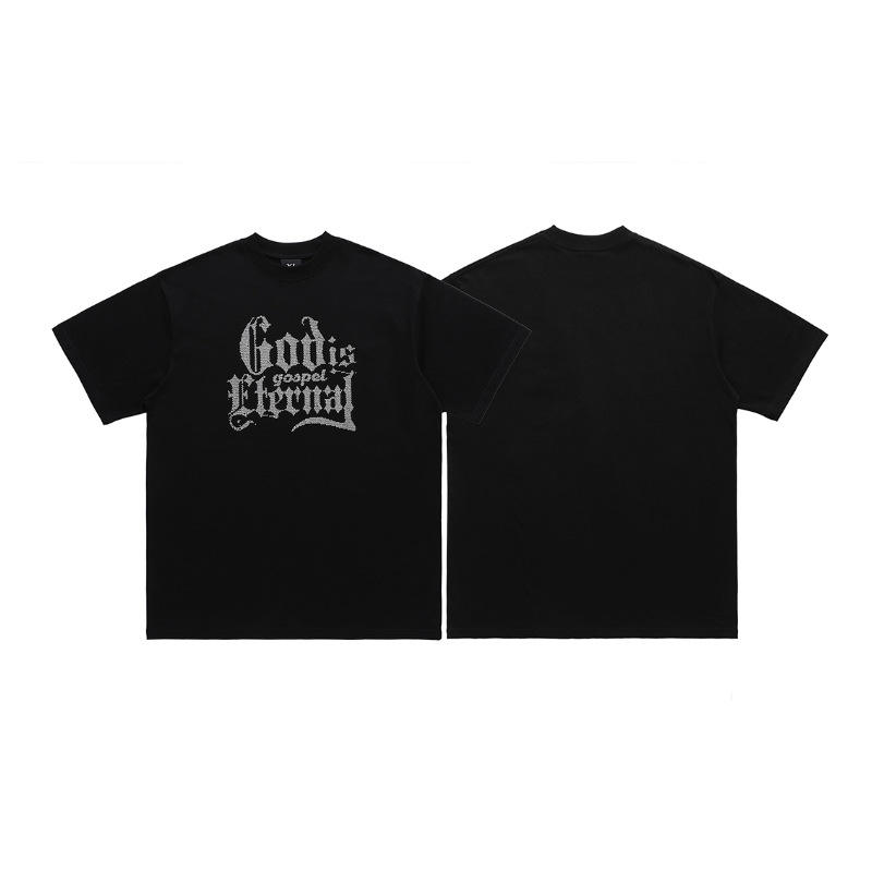 T-shirt pour homme en coton 100% tricoté respirant, surdimensionné, lourd, personnalisé, élégant, de haute qualité, avec strass