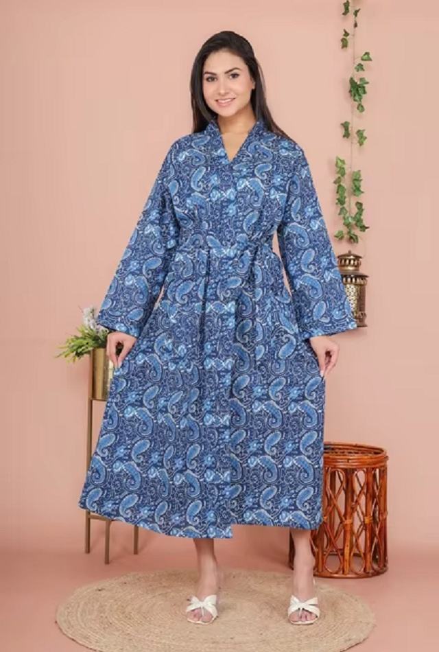 Nom du produit:Peignoir réversible en coton matelassé de haute qualité, style kimono à nouer.