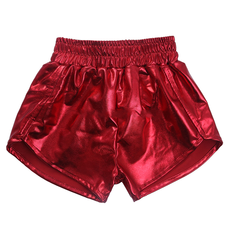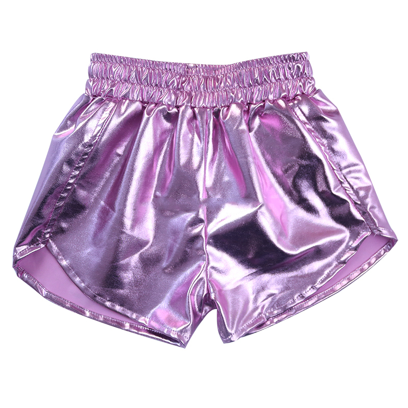 Short de sport d'été pour femmes de haute qualité taille haute respirant en cuir PU couleur unie tissu métallique pour enfants short taille haute