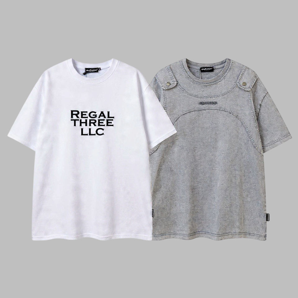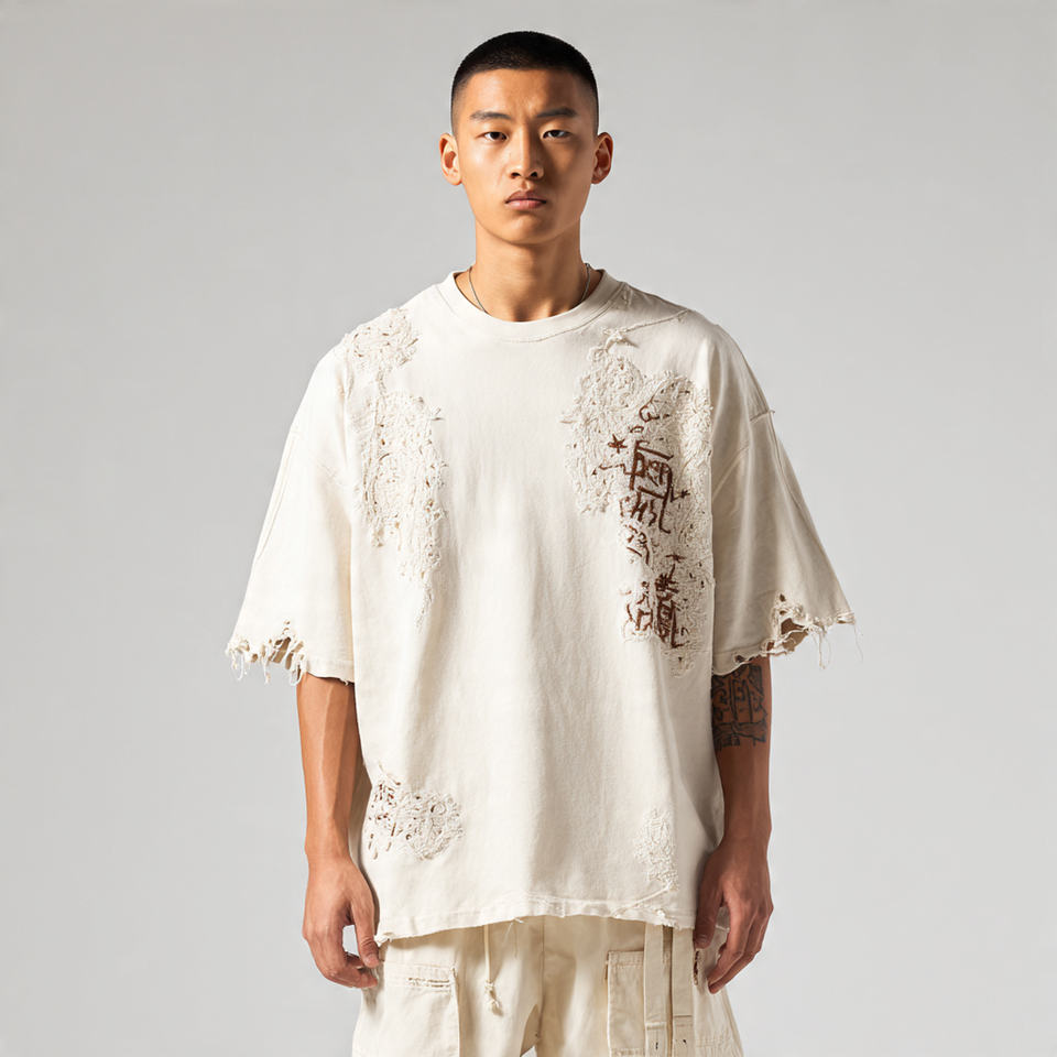 T-shirt d'été oversize de haute qualité pour homme, col rond imprimé, épaules tombantes, T-shirt tendance pour homme