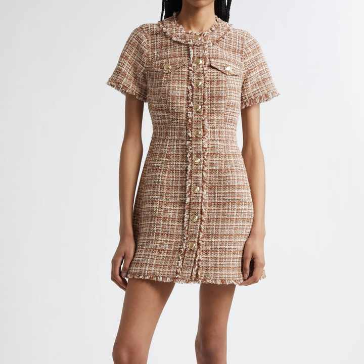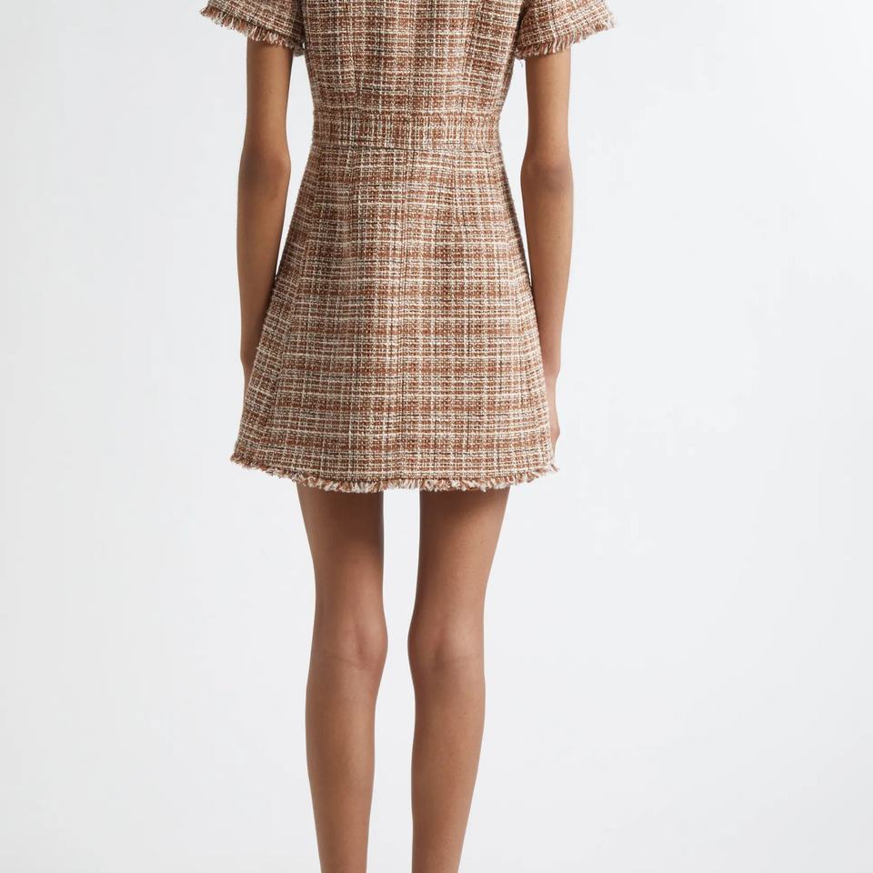 Robe Tunique d'Été de Haute Qualité à Col Rabattu, Mini-Robe Élégante de Bureau, Robe Tweed Évasée d'Automne pour Femme, Coupe Empire à Carreaux