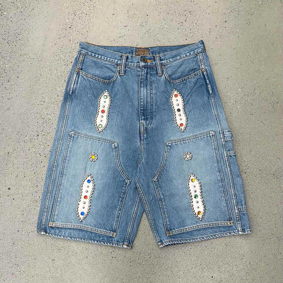 Short en jean vieilli délavé au soleil de haute qualité 19OZ Shorts en jean lavés Vintage lourds Shorts en broderie pour hommes