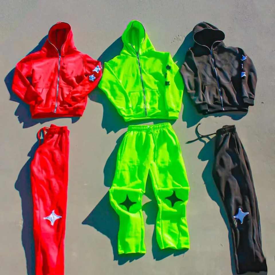 Haute qualité soleil délavé en détresse broderie à capuche et pantalon plat survêtements 100% coton fuit en gros et personnalisé