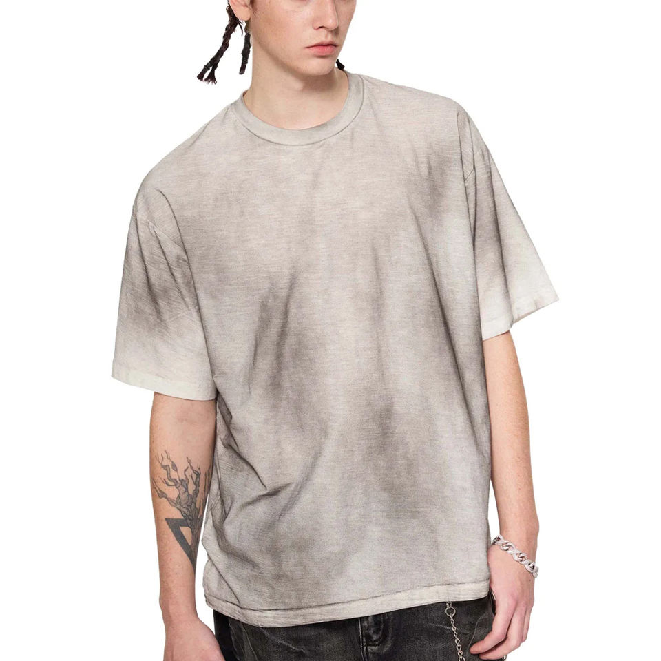 T-shirt tendance délavé effet soleil de haute qualité, dégradé, coupe oversize, personnalisé, imprimé à la main pour homme