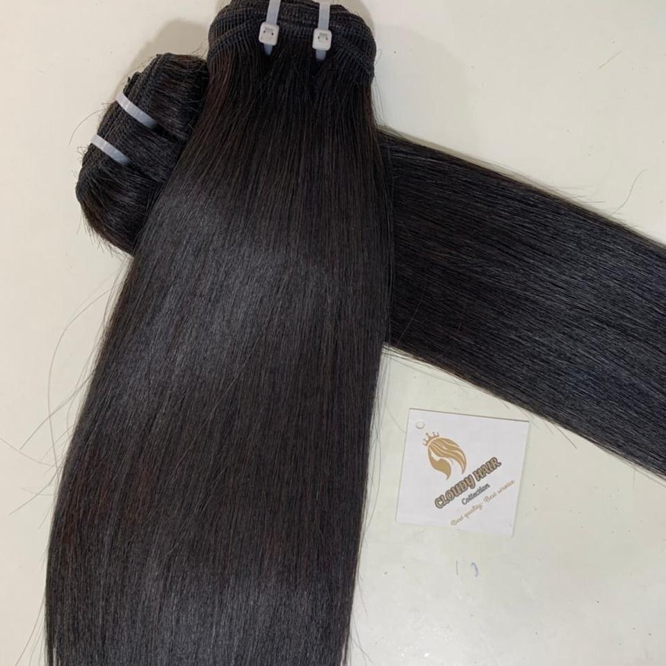 Extensions de cheveux humains de qualité supérieure, double trame, tissées à la machine, texture droite, couleur noir naturel, cheveux vierges de qualité supérieure