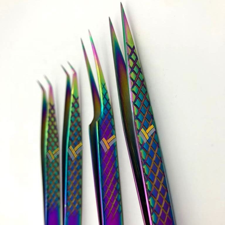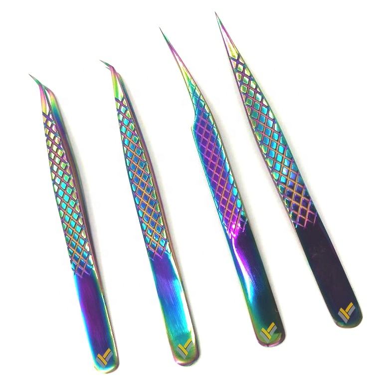 Pince à cils en acier inoxydable de marque privée arc-en-ciel avec logo personnalisé de haute qualité