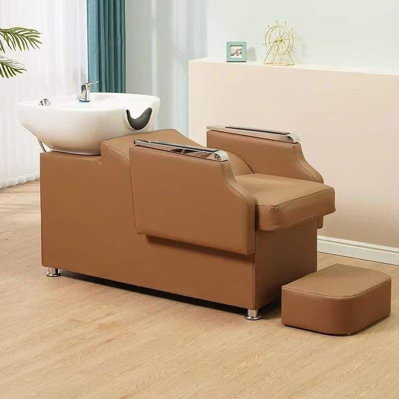 Chaise de lavage de cheveux en cuir synthétique de haute qualité, éponge en céramique durable, vente chaude, lit de lavage de cheveux pour salons de beauté, salons de coiffure, spas