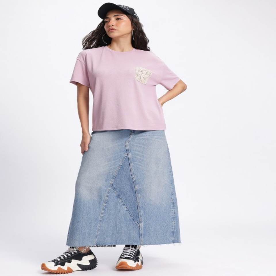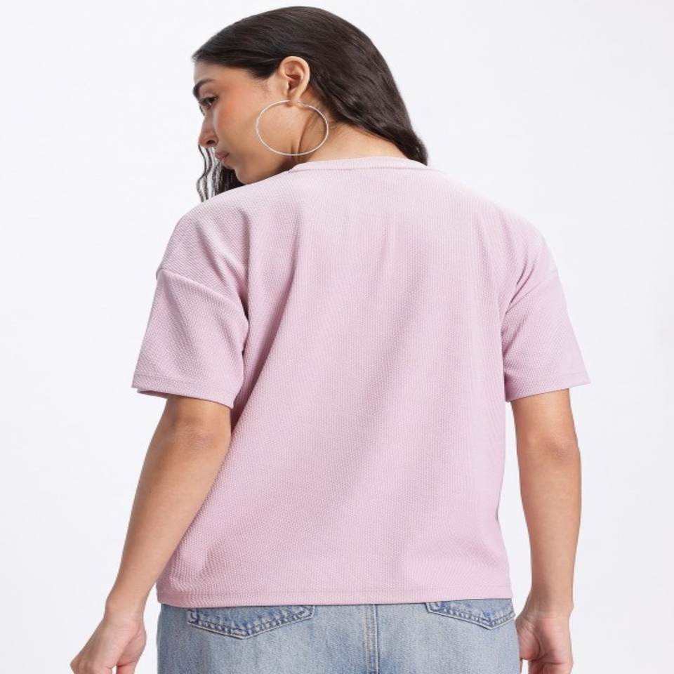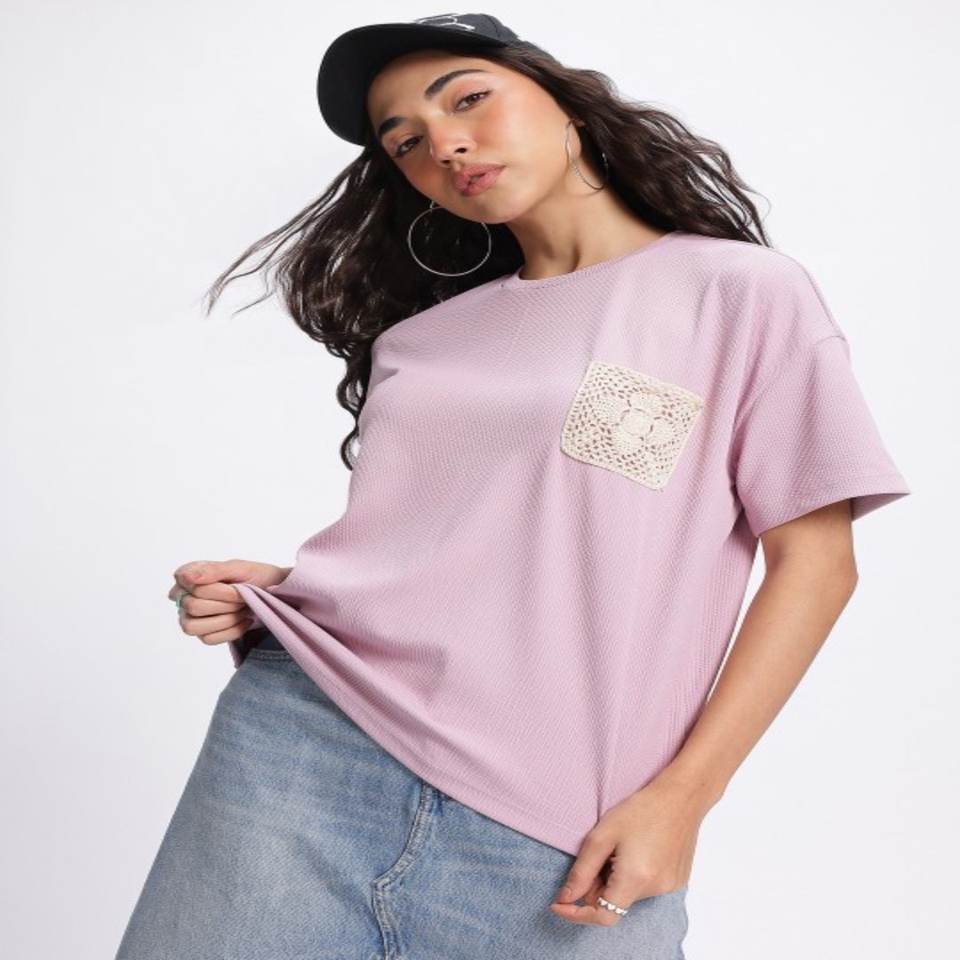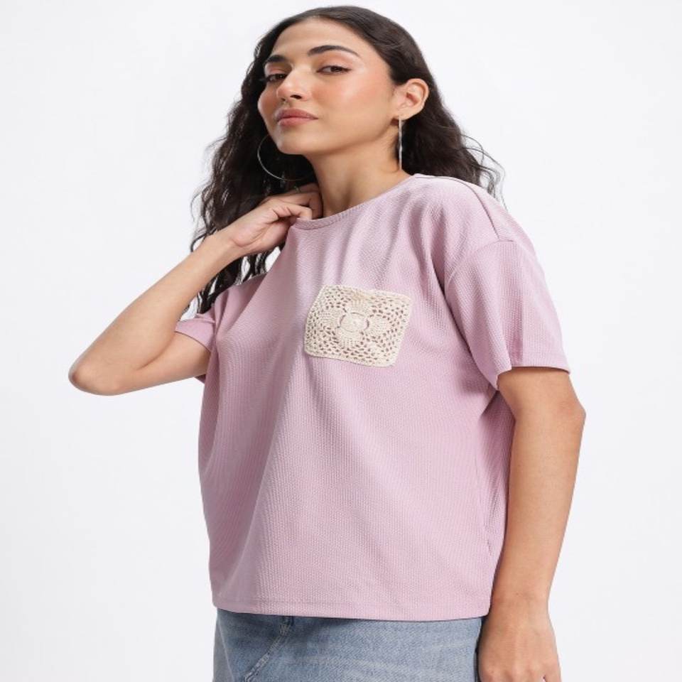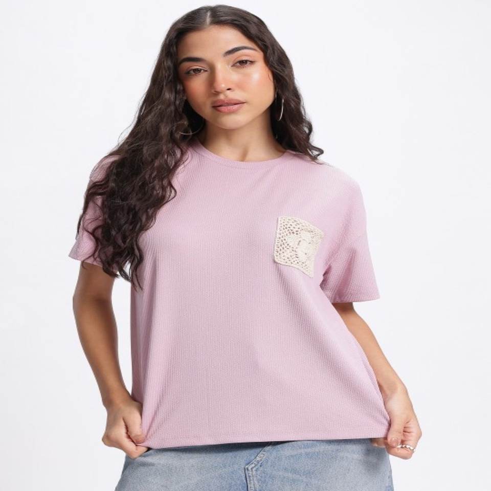 T-shirt de haute qualité Crafty Crochet côtelé manches tombantes T-shirt coupe décontractée Vêtements pour femmes fabriqués en Inde