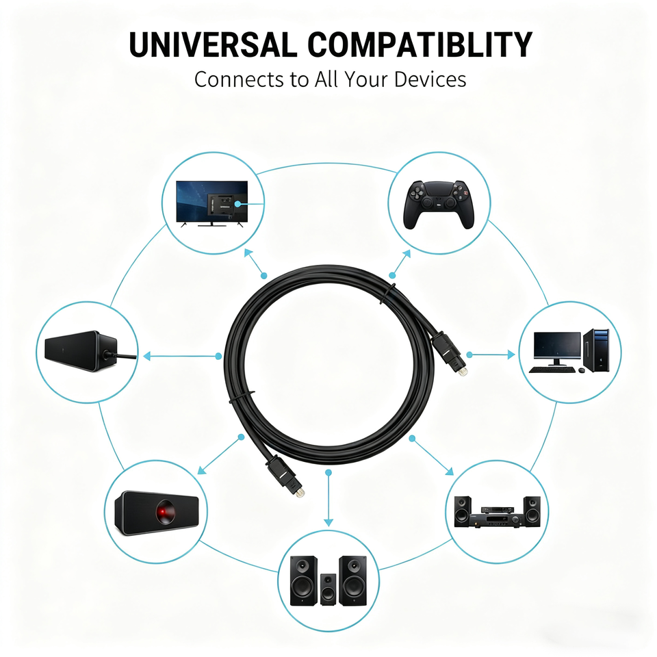 Câble audio optique TOSLINK de haute qualité avec gaine en PVC durable pour téléviseurs HD et enceintes audio