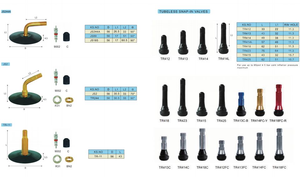 Valve de pneu en laiton de haute qualité série TR414 TR413, prix usine, état neuf, avec caoutchouc à clipser pour valve de pneu tubeless