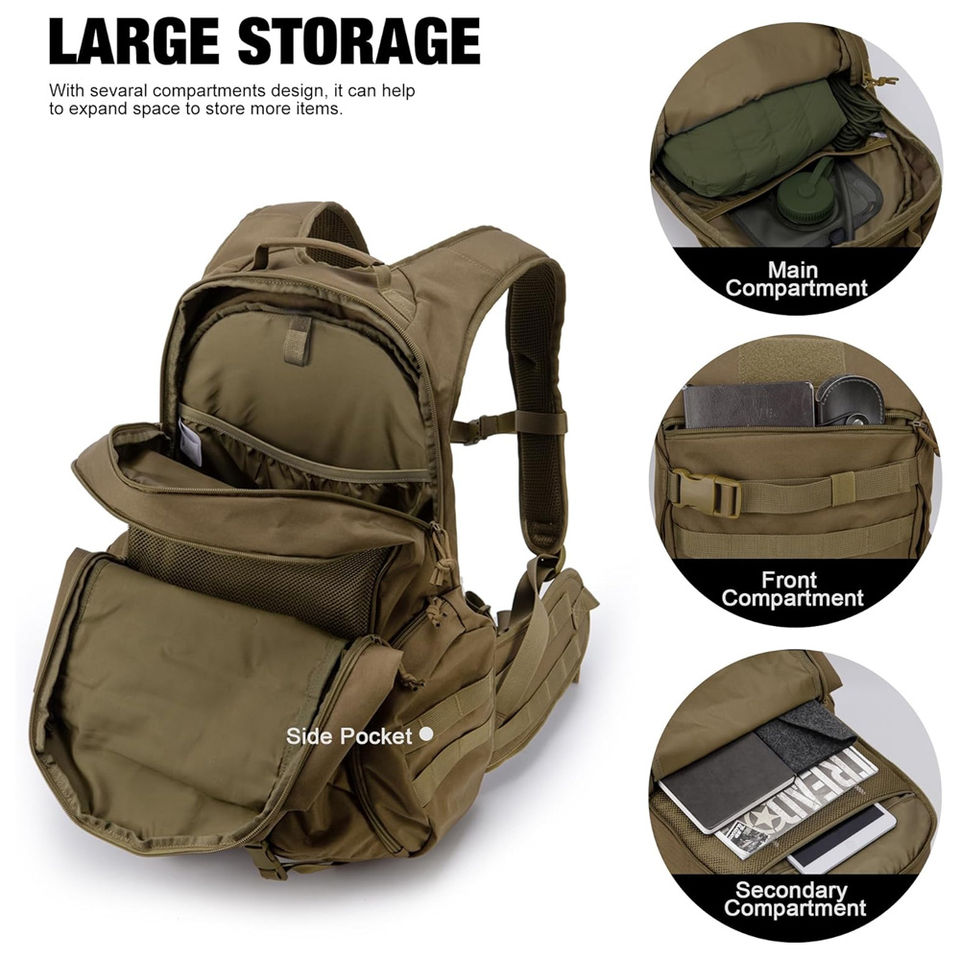 Sac à dos tactique de haute qualité pour les aventures en plein air avec logo personnalisé impression compartiments spacieux et fermetures éclair sécurisées