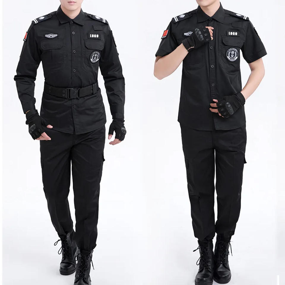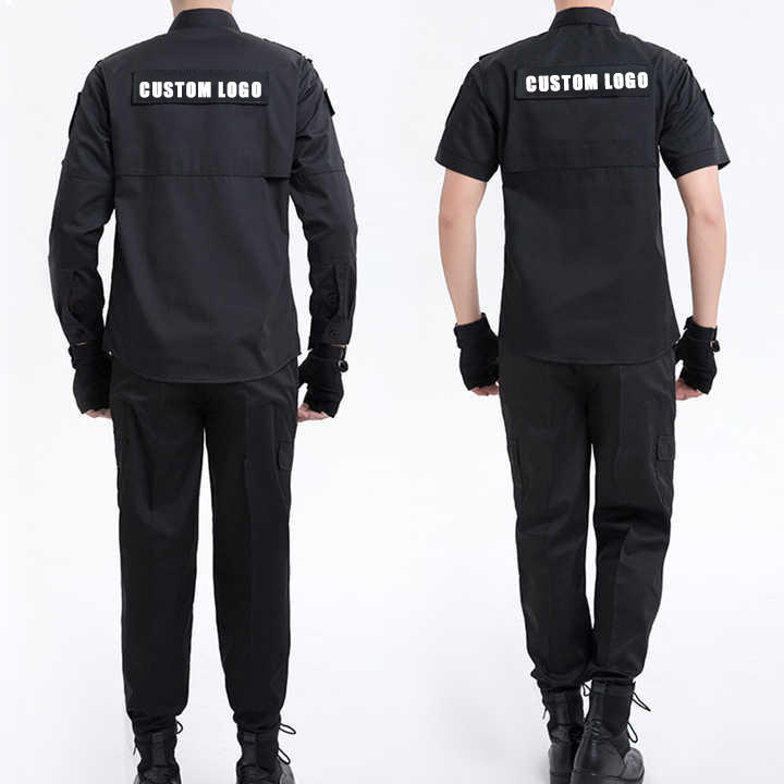 Uniformes de garde de sécurité de conception tactique de haute qualité ensemble noir fournisseur été extérieur pour hommes fabricant d'uniformes noir solide