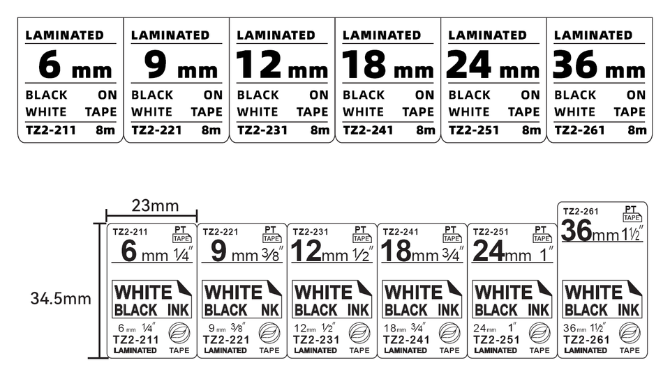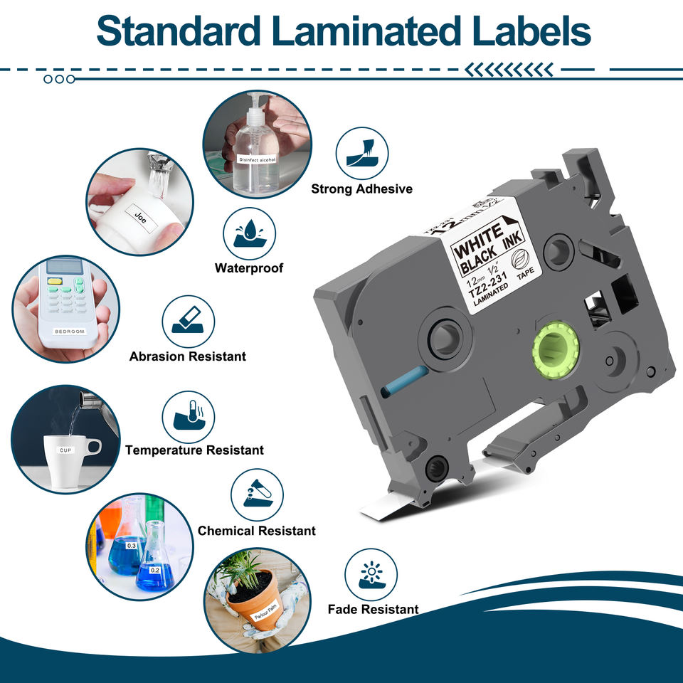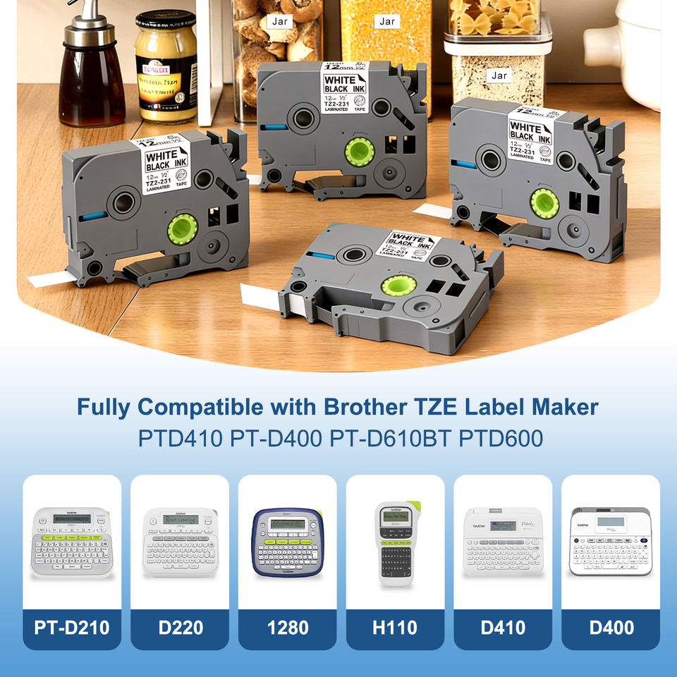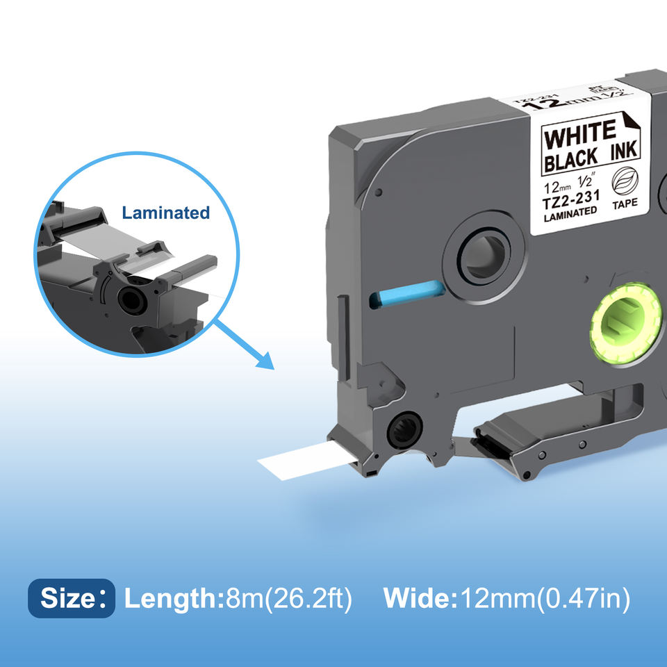 Ruban adhésif de haute qualité TZe 231 Tze231 12MM Noir sur blanc pour imprimante d'étiquettes Brother P-Touch Ruban d'étiquetage Tz