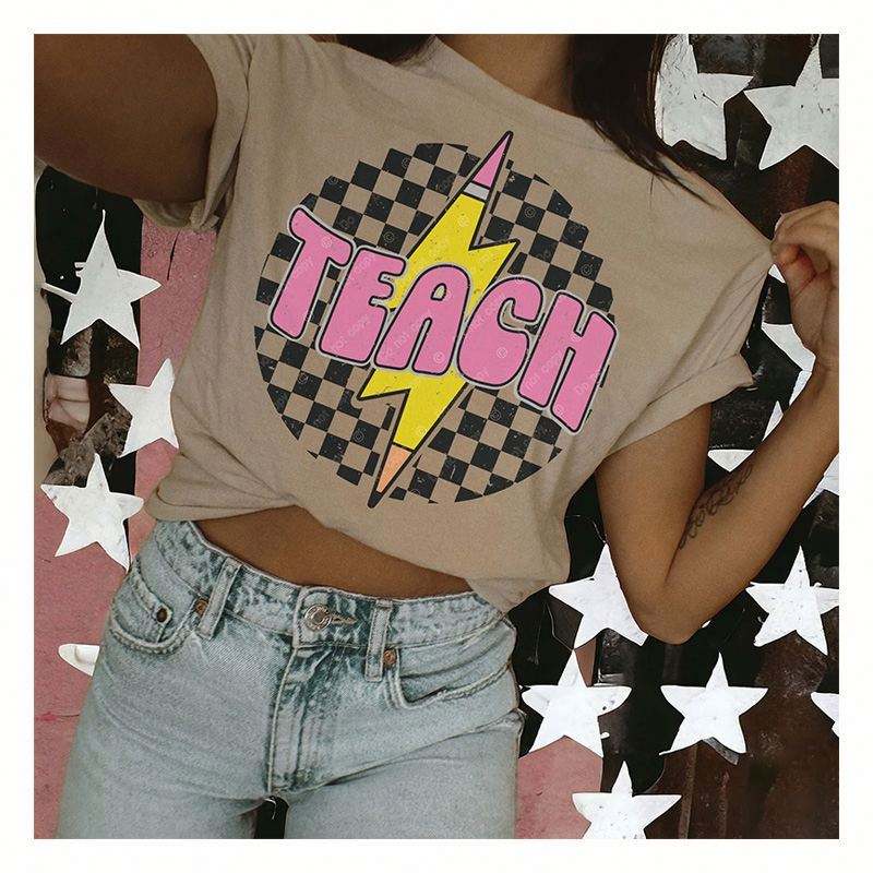 Vinyle thermocollant de haute qualité pour logo d'enseignant, encre plastisol, motifs de transfert DTF prêts à être pressés pour t-shirts