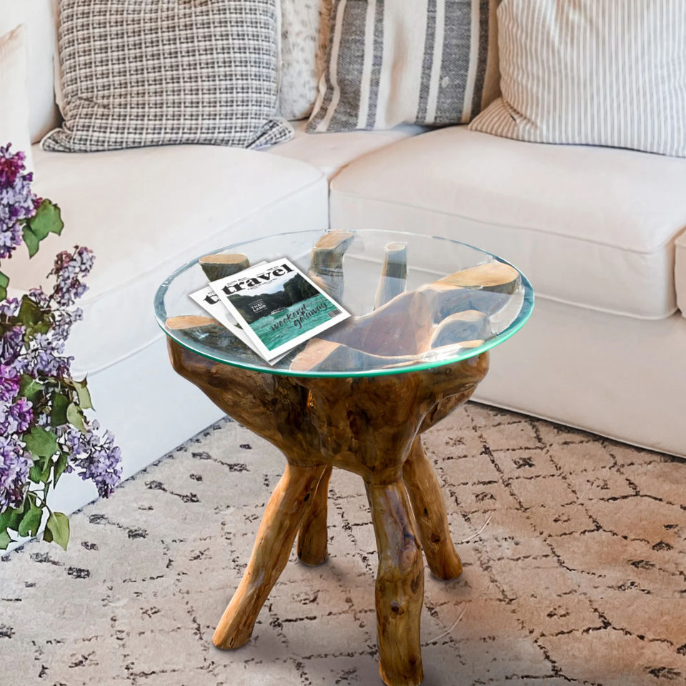 Table en racine de teck de haute qualité, écologique, durable, en bois organique, ensemble de table basse pour salle à manger moderne et luxueuse, assorti aux chaises - Riza