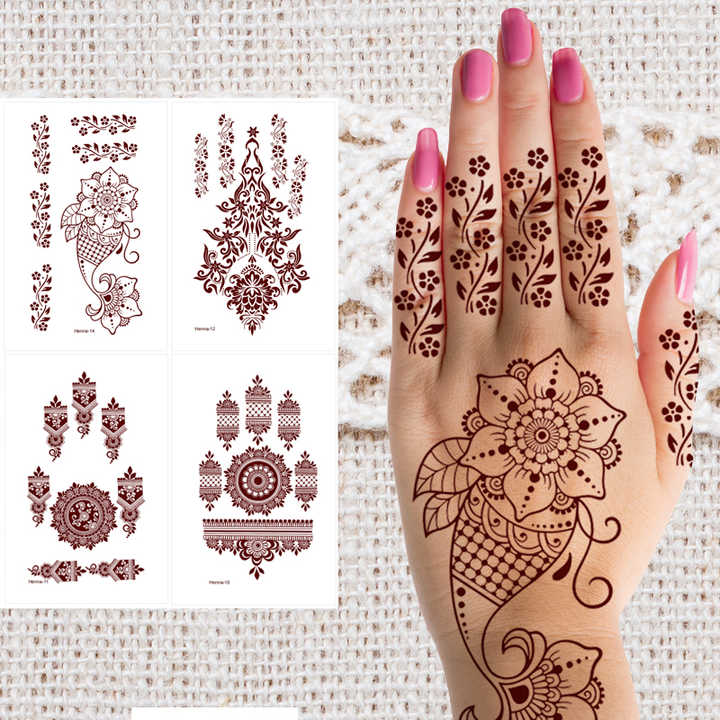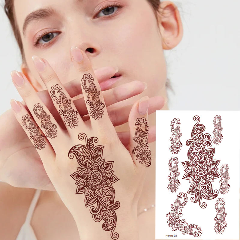 Tatouages Temporaires de Haute Qualité Style Tendance, Autocollants au Henné Éphémères Imperméables, Tatouages Marron pour les Mains